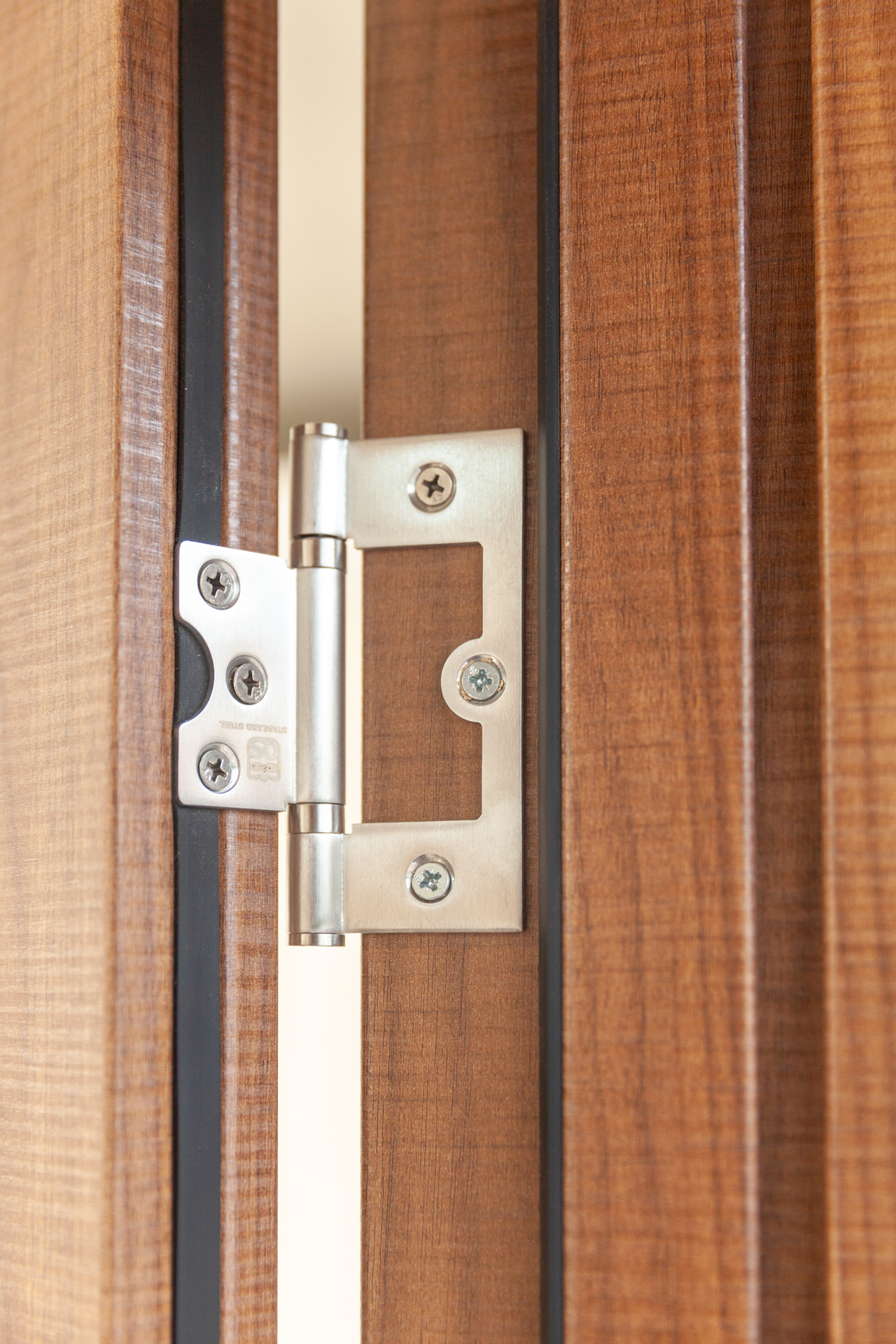 Po želji kupca, uz doplatu, u vratno krilo možemo da ugradimo ekstrudiranu ivericu, skrivene šarke, padajući prag, ventilacione rešetke...
