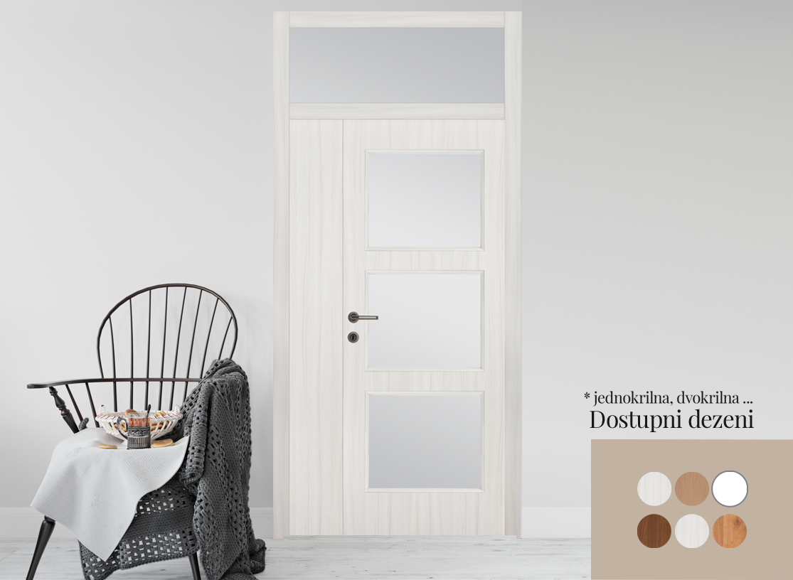 Vrata sa nadsvetlom Siena - 215 eur Vrata sa nadsvetlom Portofino - 235 eur Klizna vrata Siena - 243 eur Klizna vrata Portofino - 270 eur Dvokrilna vrata Siena - 330 eur Dvokrilna vrata Portofino - 384 eur Postoje opcije dvokrilnih vrata sa nadsvetlom i sa otvorima za staklo na vratima, cena na upit.